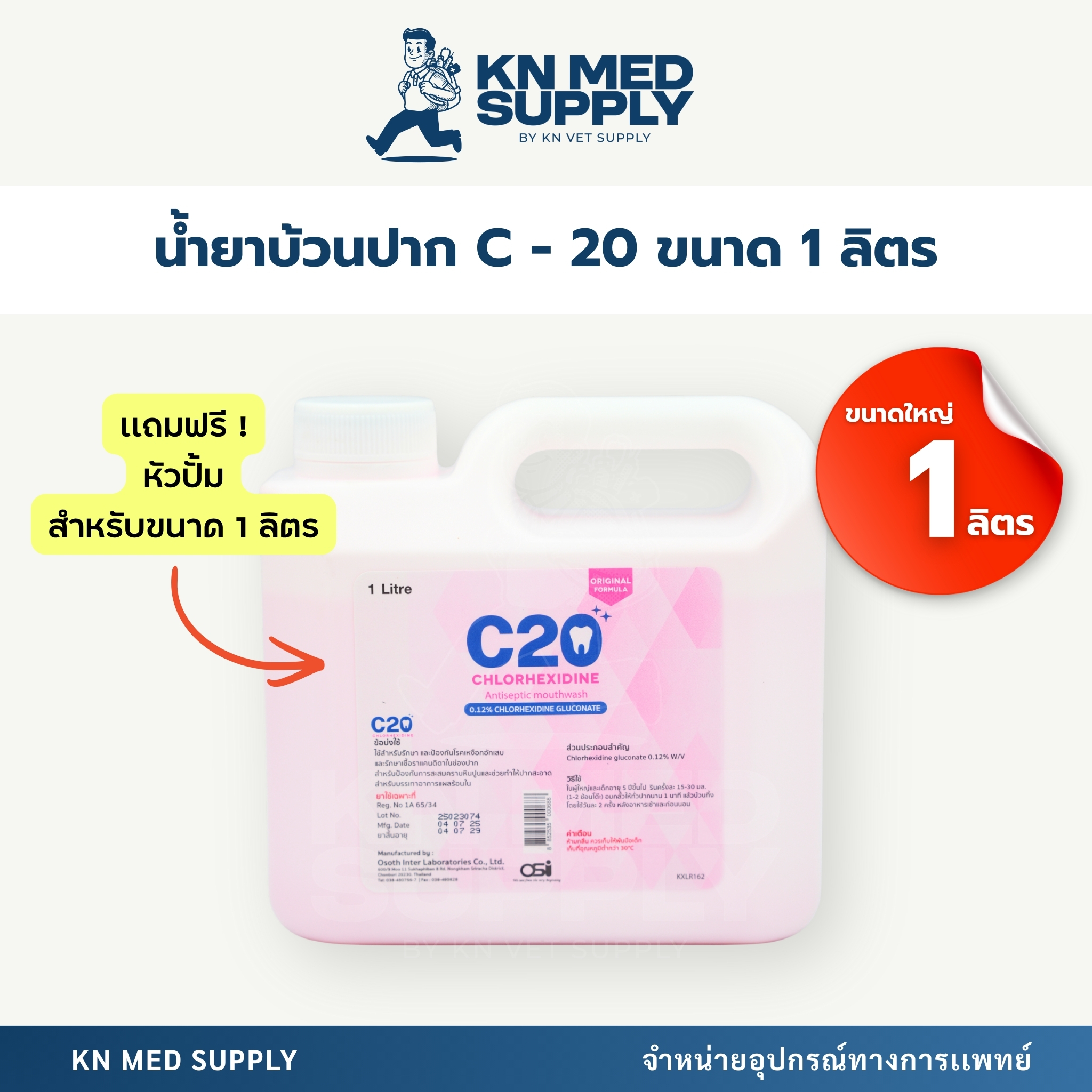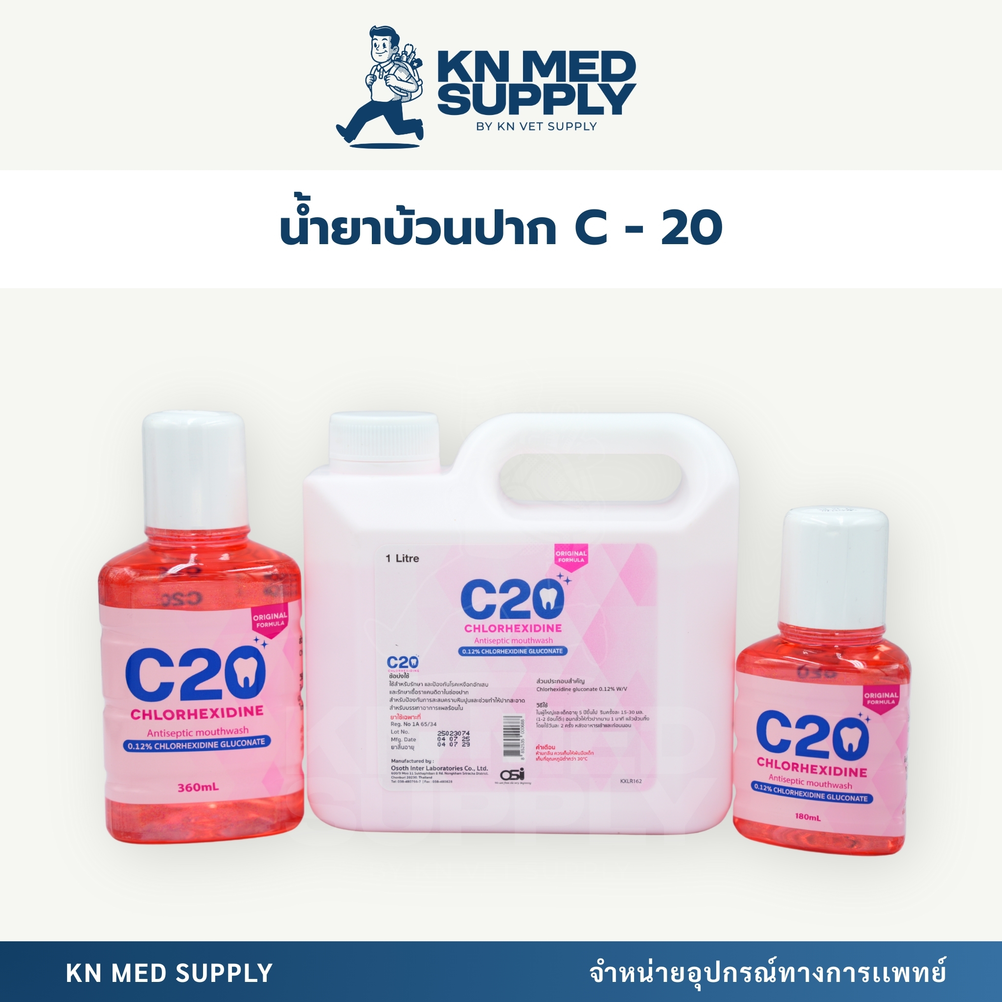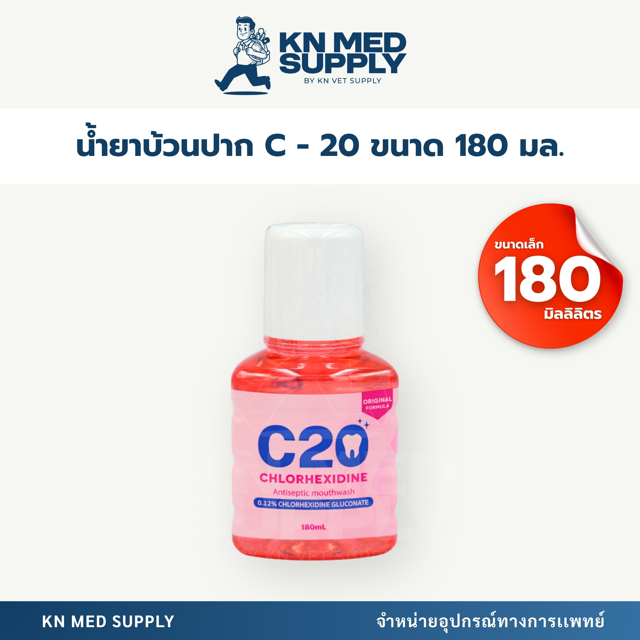 น้ำยาบ้วนปาก C-20 ใช้สำหรับทำความสะอาดช่องปาก ช่วยลดการสะสมของเชื้อโรคและแบคทีเรียภายในช่องปาก ช่วยลดกลิ่นปาก และเสริมสุขอนามัยช่องปากอย่างมีประสิทธิภาพ เหมาะสำหรับการดูแลช่องปากในชีวิตประจำวัน รวมถึงการใช้งานในสถานพยาบาล คลินิก และงานทันตกรรม