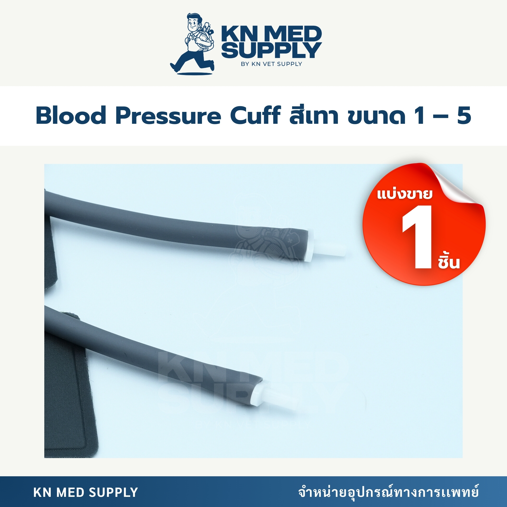 Blood Pressure Cuff (สีเทา) เป็นผ้าพันแขนสำหรับใช้ร่วมกับเครื่องวัดความดันโลหิต ออกแบบให้กระชับ แข็งแรง และใช้งานง่าย ช่วยให้การวัดค่าความดันมีความแม่นยำ ผลิตจากวัสดุคุณภาพดี ไม่ระคายเคืองผิว สามารถเลือกขนาดให้เหมาะสมกับรอบแขนหรือขาสัตว์/ผู้ป่วยได้ตามการใช้งาน