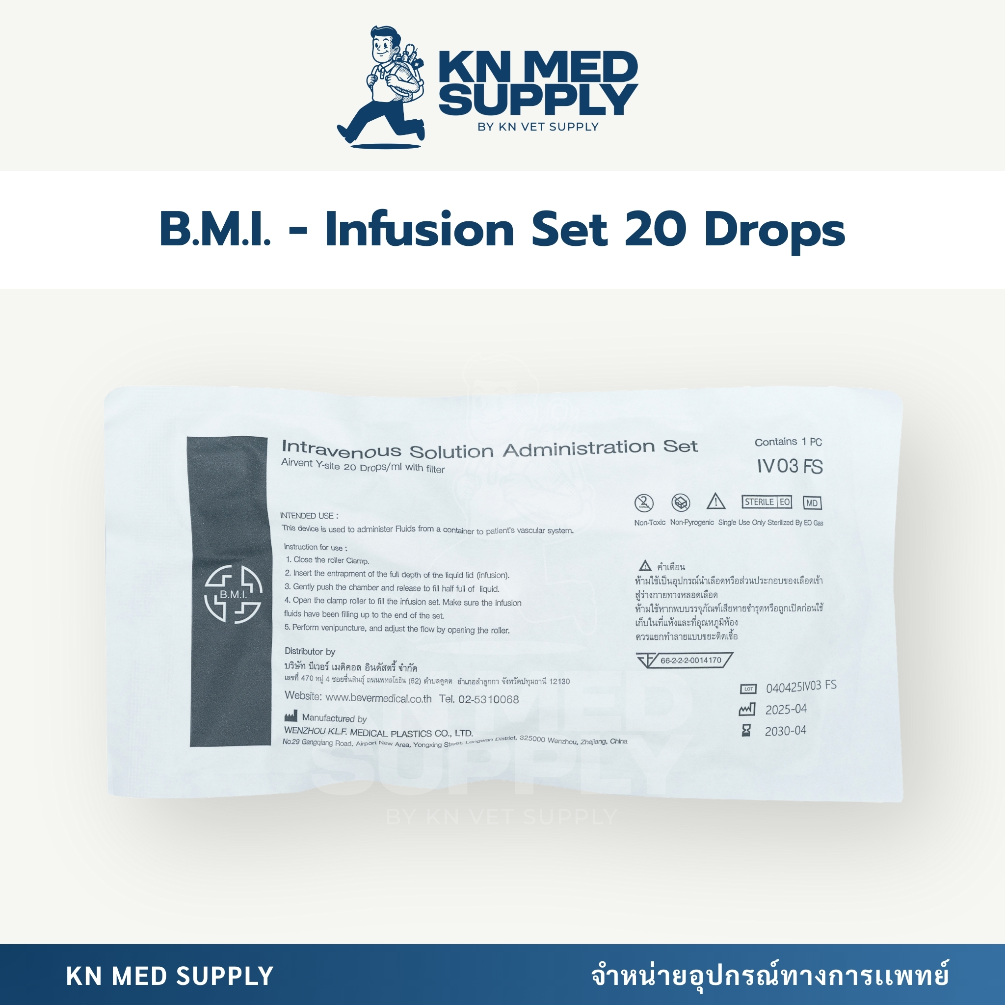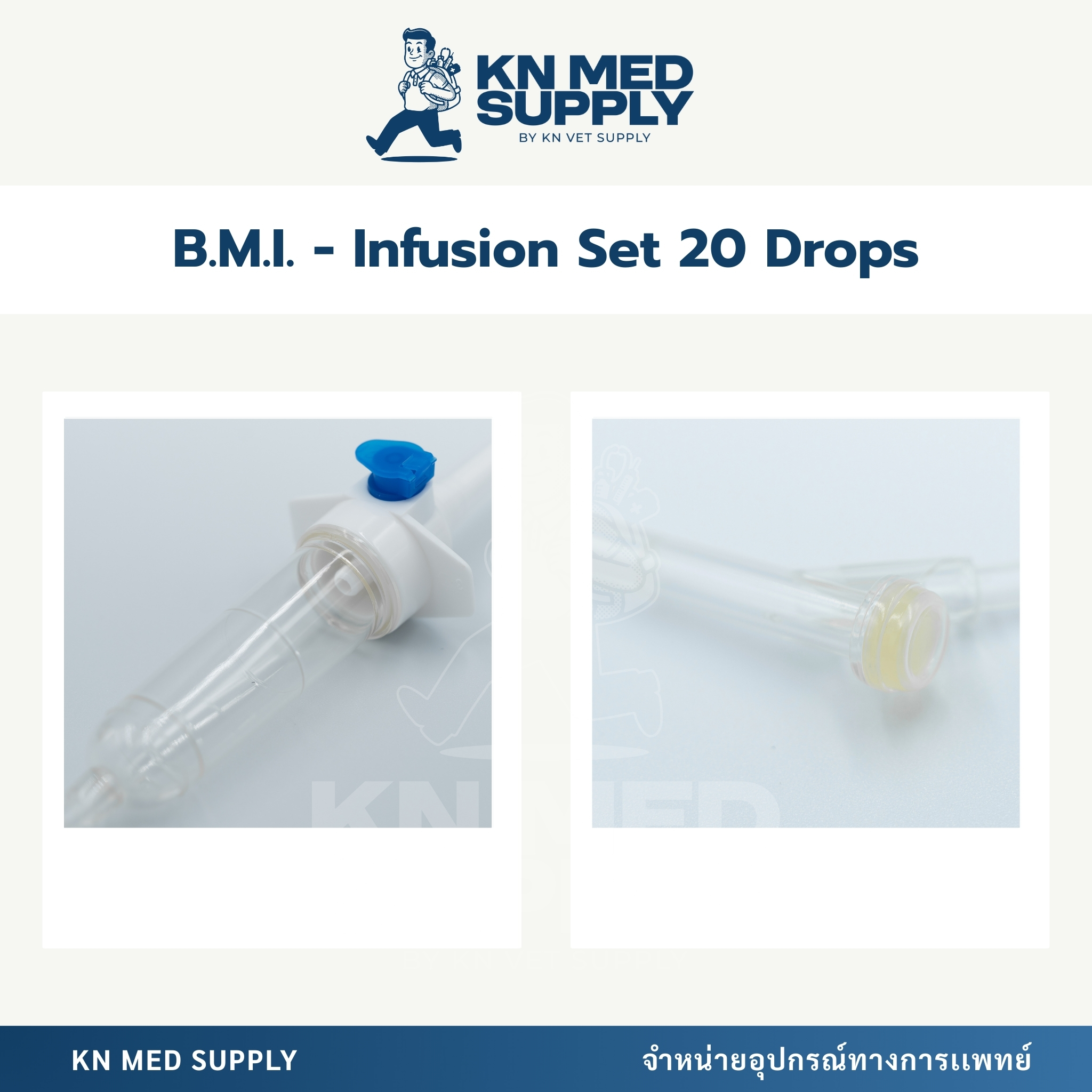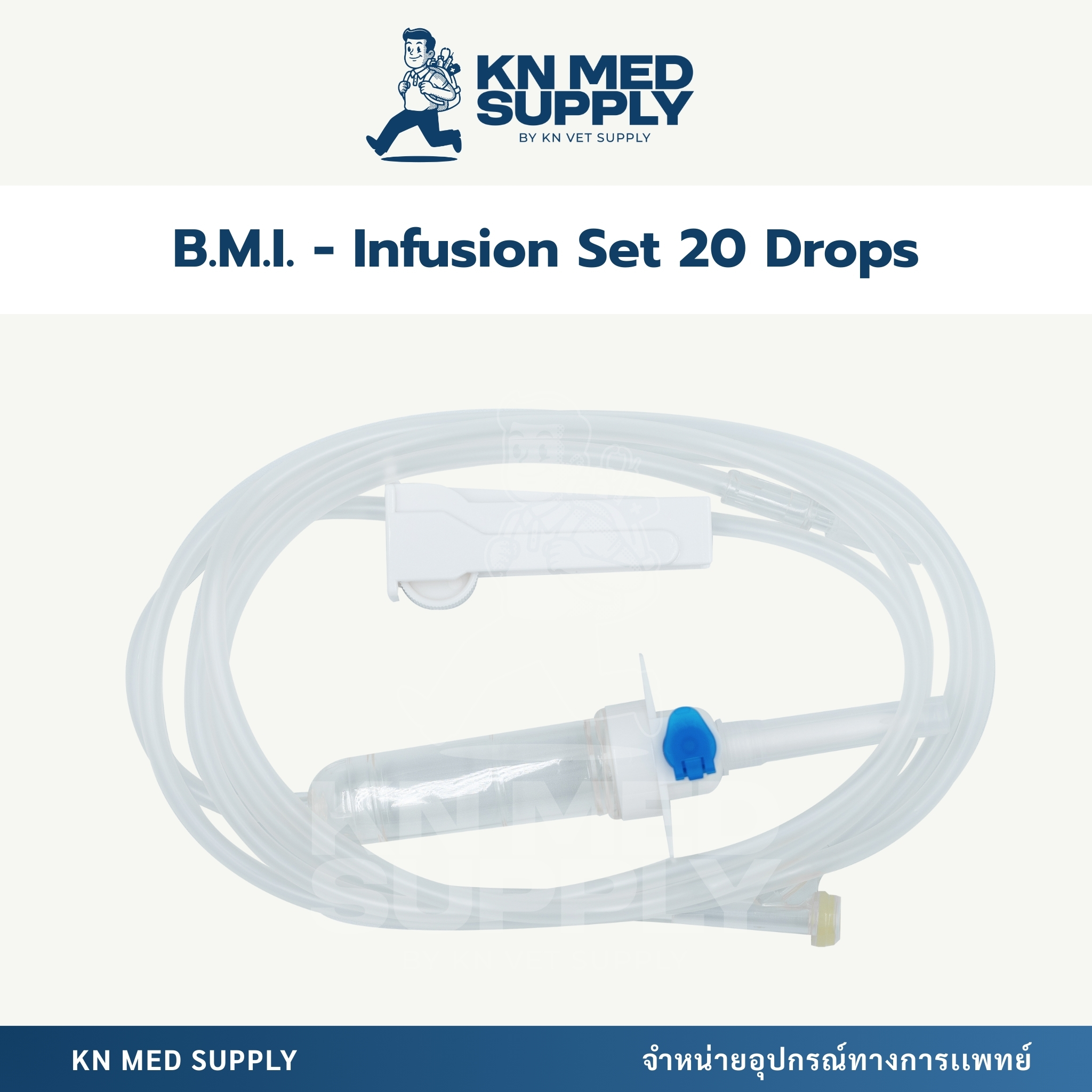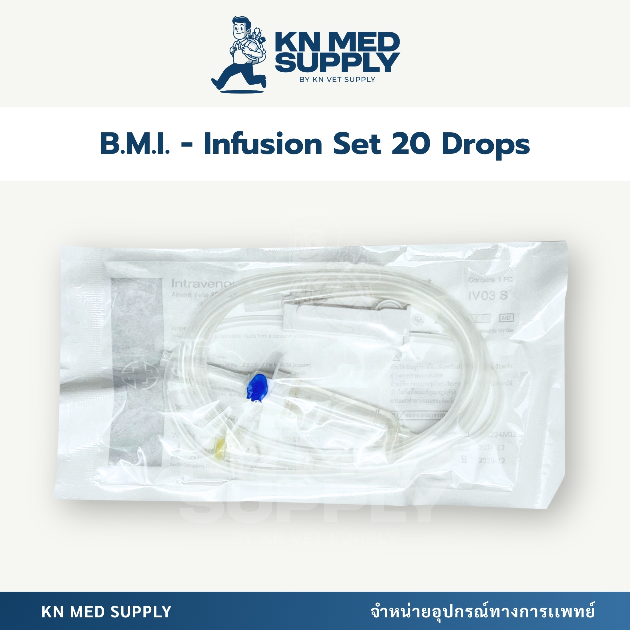 B.M.I. Infusion Set 20 Drop (ชุดให้น้ำเกลือ) เป็นชุดให้น้ำเกลือและสารละลายทางหลอดเลือด ผลิตจากวัสดุคุณภาพสูง ปลอดสารพิษ เหมาะสำหรับการให้น้ำเกลือ ยา และสารละลายต่าง ๆ ทางหลอดเลือดดำอย่างปลอดภัย