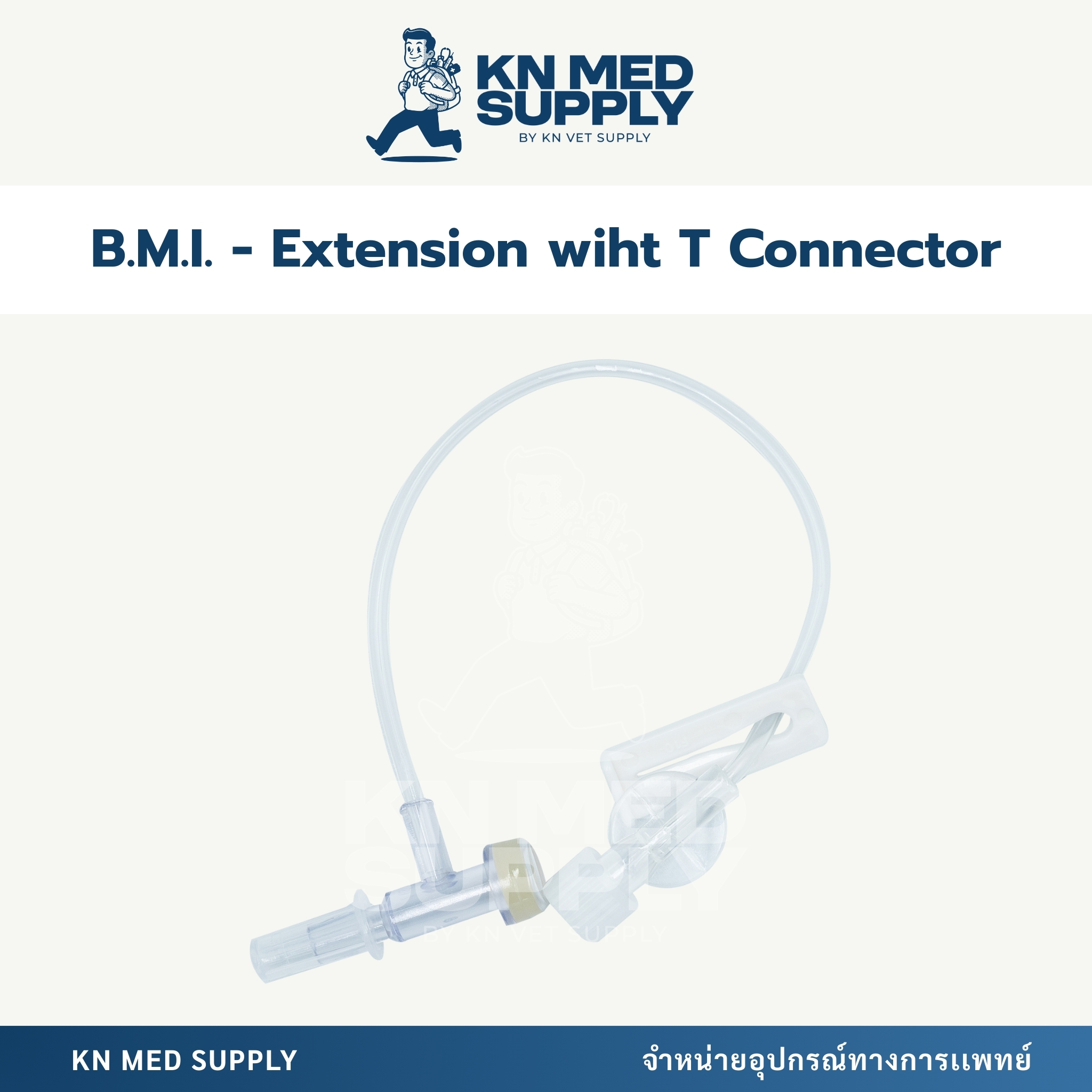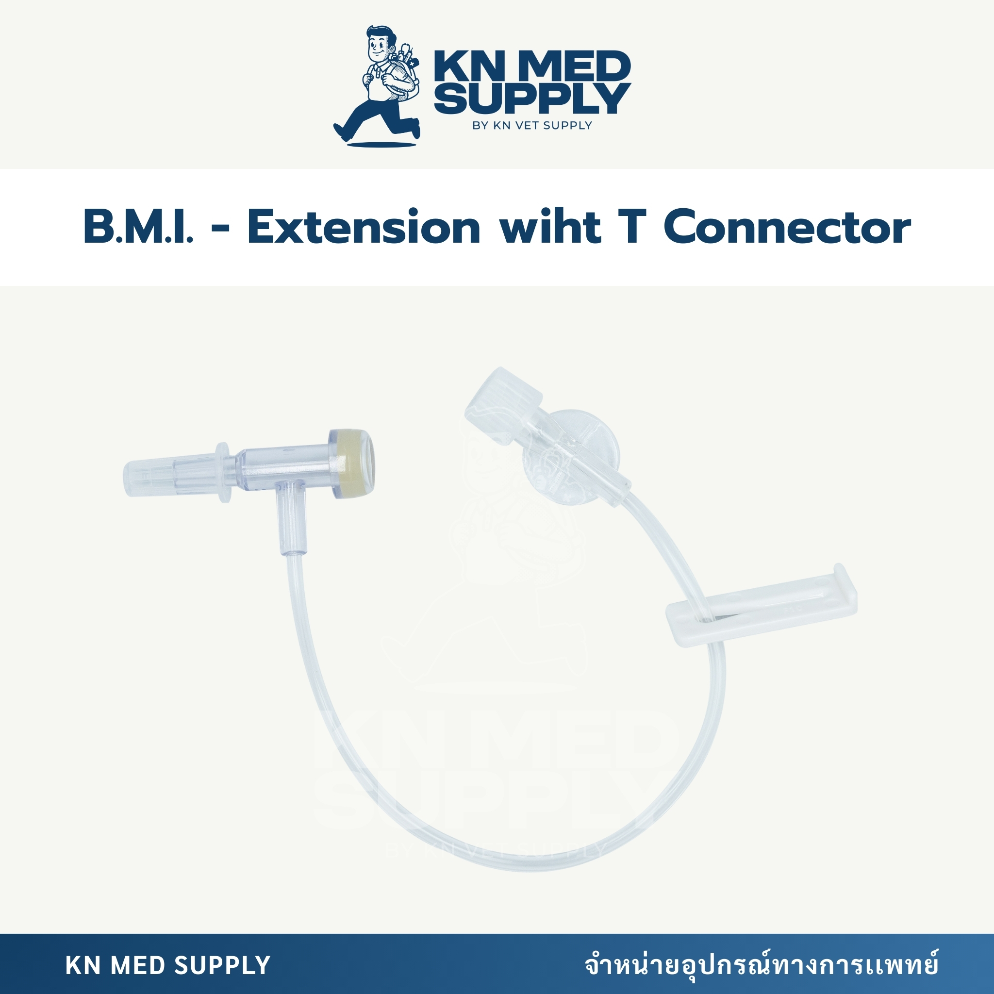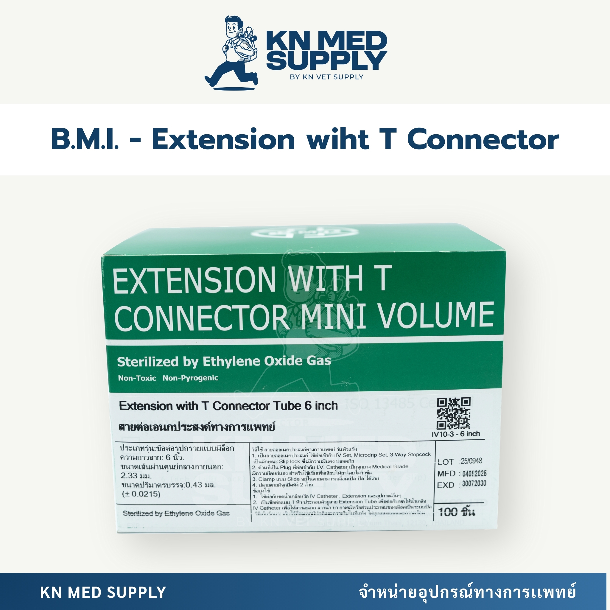 B.M.I. Extension with T Connector (Mini Volume) ขนาด 6 นิ้ว เป็นอุปกรณ์ต่อสายทางการแพทย์ ใช้สำหรับเชื่อมต่อระหว่างชุดให้น้ำเกลือ (Infusion Set) หรือสายให้เลือด (Blood Administration Set) เพื่อเพิ่มทางออกแบบ T-connector ช่วยอำนวยความสะดวกในการให้น้ำเกลือ ยา หรือสารละลายแก่ผู้ป่วย